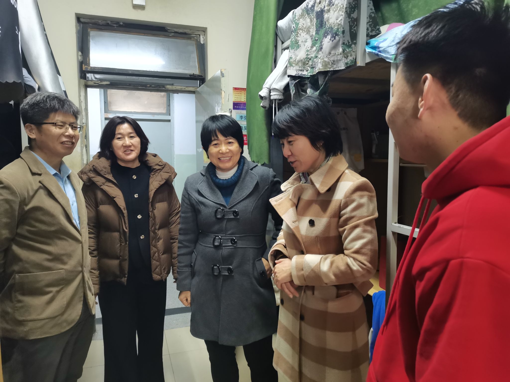 “暖心宿舍行”环节紧随其后,院领导与辅导员走进考研学生宿舍,与学子们面对面交流。在学生宿舍,院领导详细询问学子们的复习进度、作息安排与备考难点,叮嘱大家注意保暖,合理调配作息,以最佳状态迎接考试;强调考场规则与考试法规,反复叮嘱学子们诚信应考,坚守学术底线。辅导员建立“考研护航台账”,精准记录每位学生的个性化需求,为后续精准帮扶打下坚实基础。