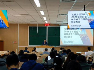 2026-04-214月14日,机械工程学院在阶梯教学楼204室开展本科生转专业专项纪法警示教育,学院1...