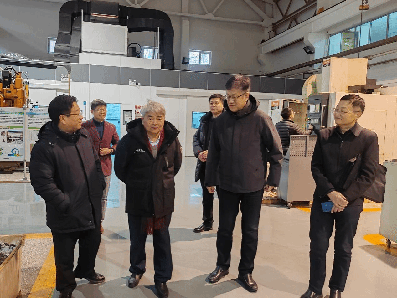 随后,谭建荣一行前往工程实训中心。蔡玉俊系统介绍了学校在应用型人才培养方面的特色模式与实践成效,突出强调了产教融合、技能实训等环节的创新举措。谭建荣结合清华大学工程训练中心的建设经验,与郑清春围绕工程实践教育体系优化、高层次技术技能人才培养等核心议题进行了深度探讨,为我校进一步提升人才培养质量提供了建设性建议。