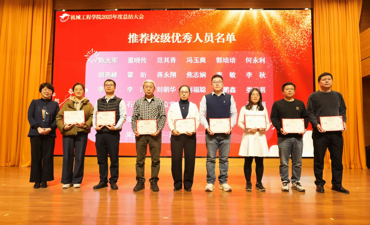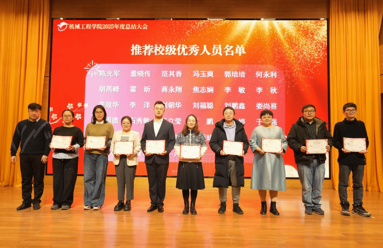 回眸耕耘路,启程新篇章。本次大会既是一次总结成绩、表彰先进的总结会,也是一次凝聚人心、激昂斗志的动员会。站在2026年的新起点上,机械工程学院全体教职工将以此次大会为契机,以受表彰的先进为榜样,继续坚守育人初心,勇担创新使命,以更加饱满的热情、更加务实的作风,携手并肩,开拓进取,共同谱写学院高质量发展的新篇章,为学校各项事业发展贡献机械力量。