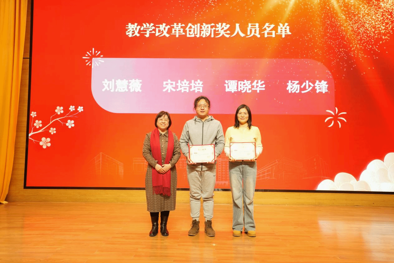 大会首先进行年度表彰及颁奖环节。在过去的一年中,学院全体教职工躬耕教坛,锐意创新,涌现出一批爱岗敬业、成绩突出的先进个人。大会依次对荣获校级优秀、院级优秀、教学改革创新奖、科研突出贡献奖、三全育人奖以及长期挂职锻炼表现优秀的教师进行了表彰,现场领导分别为获奖代表颁奖。此外,学院还向退休老教师颁发纪念品,感谢他们为学院发展作出的贡献。
